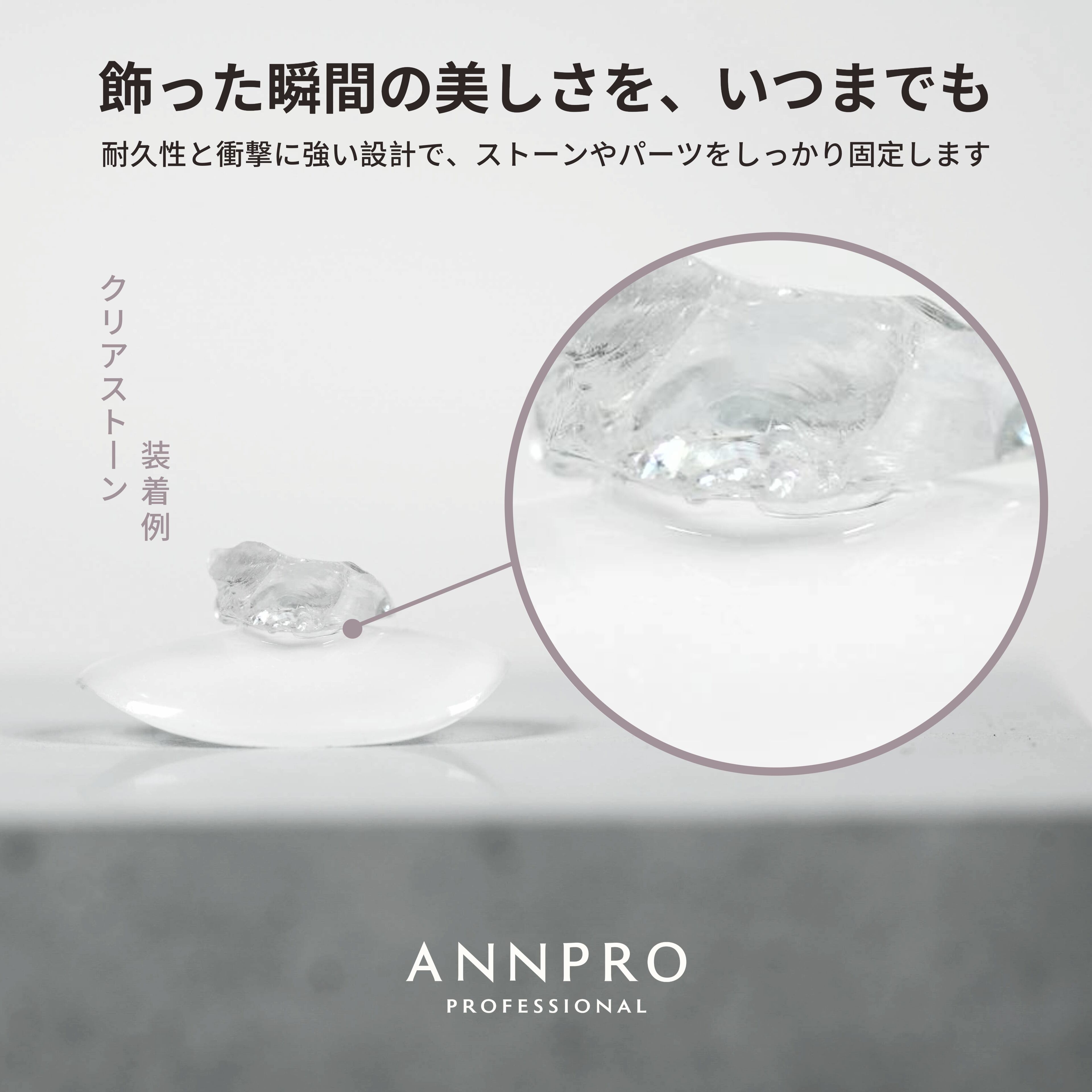 大きめパーツにも対応できる接着力と、長期間取れにくい耐久性で、衝撃に強くストーンやパーツをしっかり固定します。小さめストーンからチェーンや大きめパーツまで対応し、3Dパーツ固定にも使用できるプロ向け設計です。