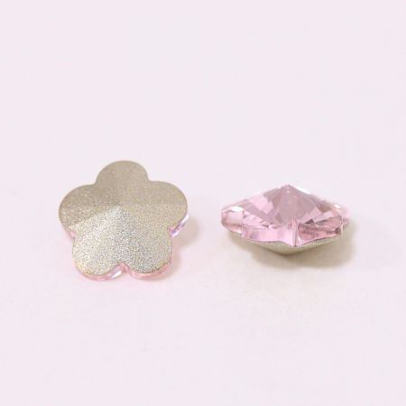ライトピンクの5枚花型のジルコニア製ストーン。見惚れるほどのキラキラ感で底部は緩めのVカットでフラットに近いビジューアートをお楽しみ頂けます。